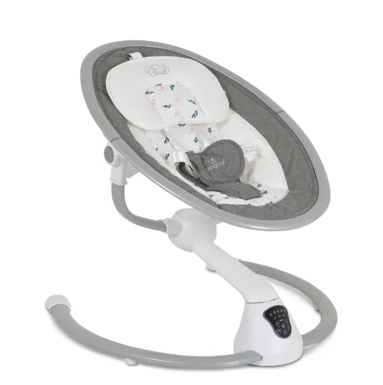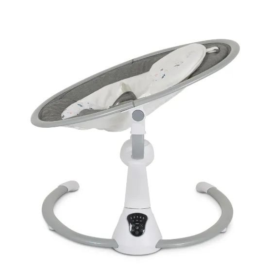 Funcții: 5 viteze de leagăn; timer pentru oprire automată cu 3 opțiuni; cutie muzicală cu 12 melodii și 5 sunete naturale cu opțiune de reglare a volumului; funcție de "șezlong"; rotație a scaunului; detector de mișcare pentru copil