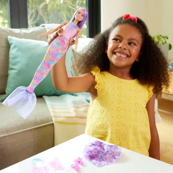 Varietate de accesorii: Setul conține coadă de sirenă, aripi de zână, coliere regale, încălțăminte și multe altele, permițând crearea unor ținute unice și magice pentru păpușa ta Barbie.