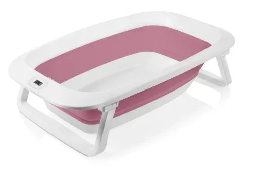 Cadita pliabila cu termometru Lionelo BabyBubble Pink Magnolia, 85 cm