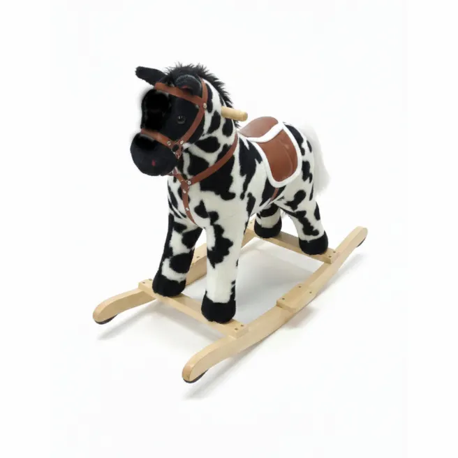Acest cal de lemn va deveni un element frumos și îndrăgit în colecția de jucării a copilului dumneavoastră. Produsul este acoperit cu pluș moale, plăcut la atingere. Calul stimulează jocurile de rol, iar patinele stabile din lemn asigură o balansare sigură și lină.