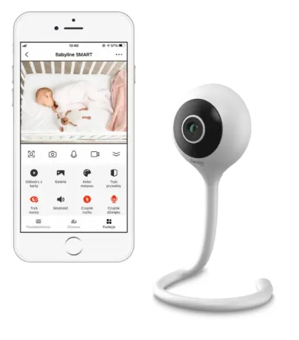 Acesta este un dispozitiv mic și compact, dotat cu o serie de funcții utile. Camera IP se conectează prin Wi-Fi, ceea ce le permite părinților să-și vadă copilul din orice loc din apartament, grădină sau birou (când copilul este îngrijit de dădacă sau de bunica). Babyline Smart este proiectat pentru utilizare zi și noapte. Datorită luminilor IR încorporate, camera poate trimite o imagine foarte clară la 10 metri în întuneric! Mai mult, o iluminare subtilă nu emite o lumină roșie care ar perturba somnul bebelușului.