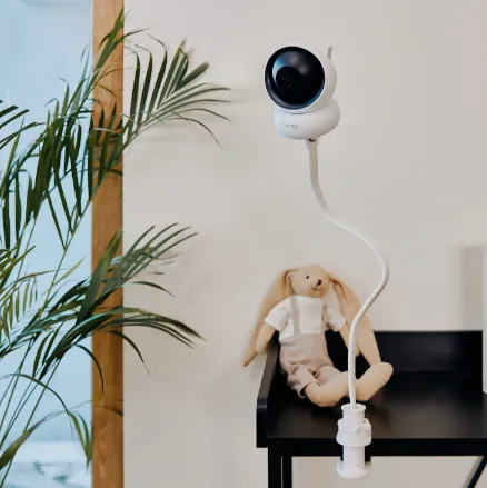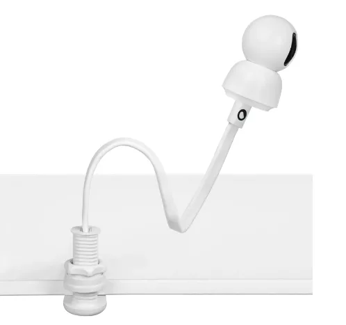 Datorită lungimii bastonului - 50.5 cm - este posibilă instalarea acestuia pe aproape orice suprafață, oferind cea mai bună vedere asupra copilului. Structura sa flexibilă face ușoară manipularea și stabilirea unghiului de vizualizare cel mai potrivit. Și clema inclusă permite montarea baby monitorului pe orice suprafață cu grosimea între 5 și 48 mm, asigurând o stabilitate și mai mare.