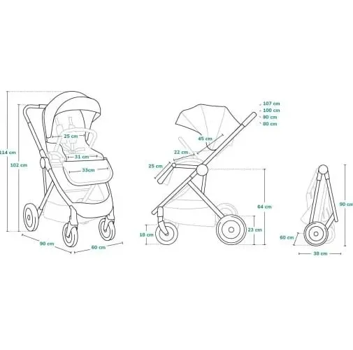 Dimensiunile produsului: desfasurat - 60x90x114 cm, pliat - 38x60x91 cm