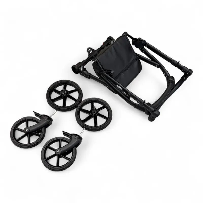 plasă de țânțari, husă de ploaie, geanta, coșuleț, roți, saltea, plasă de ventilație în capotă, suport pentru pahare.
