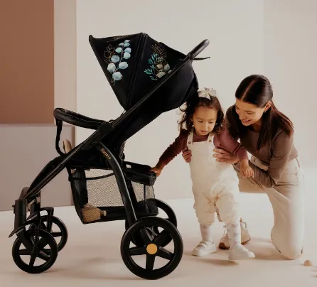 Annet Plus Golden Moments este o cărucior dedicat copiilor cu vârsta cuprinsă între 0 și 48 de luni. Marele copertină XXL este echipată cu un filtru UPF 50+, oferind protecție eficientă împotriva razelor soarelui și permițând copilului să se odihnească confortabil. În schimb, căptușeala confortabilă oferă confort părintelui în timpul plimbărilor. Roțile mari, fără necesitate de întreținere, din spumă EVA, sunt perfecte pentru aproape orice teren, iar spătarul și suportul pentru picioare reglabile, împreună cu șezutul spațios, garantează o poziție ergonomică și confortabilă pentru cel mic în timpul plimbării. Designul floral din colecția Golden Moments este o combinație subtilă de ornamente aurii cu o ramură de eucalipt, care se potrivește perfect cu copertina clasică neagră. Accentele aurii au fost aplicate manual, făcând fiecare cărucior unic în felul său. Între timp, materialul în sine a fost îmbogățit cu un strat repelent la apă pentru a proteja în continuare micuțul de ploaie.