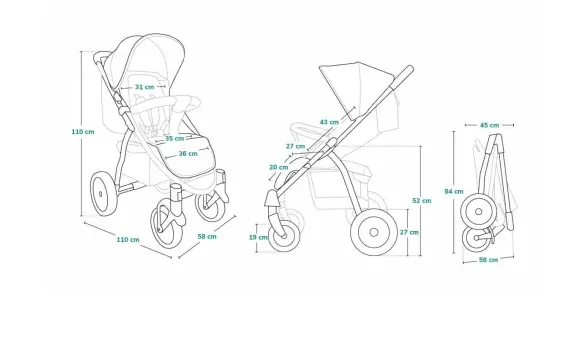 Căruciorul are un spătar și un suport pentru picioare reglabile pentru un confort sporit și vă permite să ajustați setările produsului pentru a se potrivi nevoilor copilului dumneavoastră.