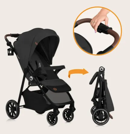 Căruciorul poate fi pliat cu o singură mână, fiind foarte convenabil pentru utilizarea zilnică. Când este pliat, rămâne în poziție verticală pentru a fi depozitat ușor. Cântărind doar 9,6 kg, căruciorul este ușor de transportat.