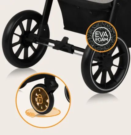 Roțile din spumă EVA se comportă bine pe orice teren și nu necesită întreținere suplimentară din partea părintelui. Sunt fără întreținere, ușoare și foarte manevrabile.