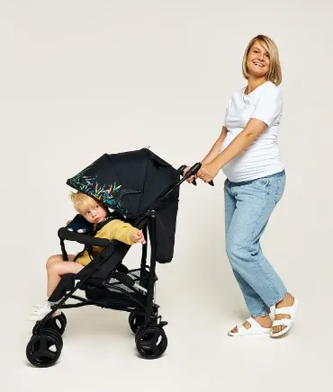 Spătarul reglabil și suportul pentru picioare ajustabil permit adaptarea poziției în funcție de nevoile copilului – de la șezut la somn. Copertina mare cu fereastră integrată protejează eficient de soare și vânt, iar tapițeria moale și pernele suplimentare asigură un confort de neegalat.