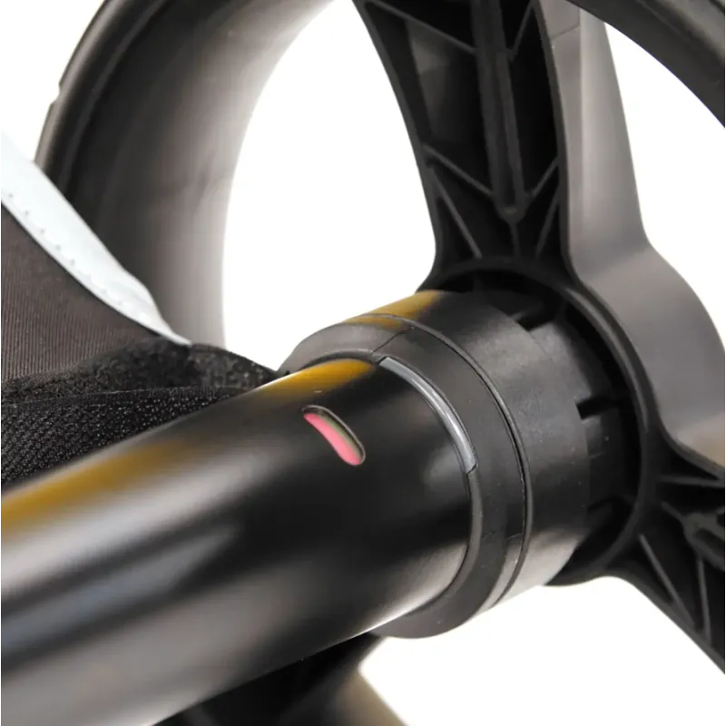 Amortizare independentă Caruciorul are suspensie pe roțile din spate. Toate sunt realizate din spumă UP rezistentă la perforare. Roțile din față au si o funcție de blocare pentru a conduce drept înainte, iar roțile din spate au o frână convenabilă.