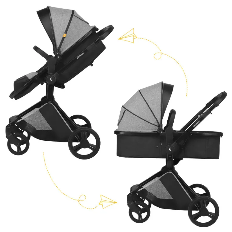 Căruciorul 2in1 pentru bebeluși Nasjo este un cărucior multifuncțional și foarte ușor de utilizat. Montarea și demontarea landoul spațios sau blocului de plimbare se face cu ajutorul butoanelor de memorie. Doar faceți clic și gata!Ventilație extinsă