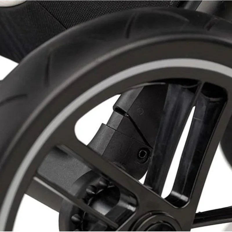 Roți din față blocabile și detașabile. Diametru roată față: Ø19,5 cm;