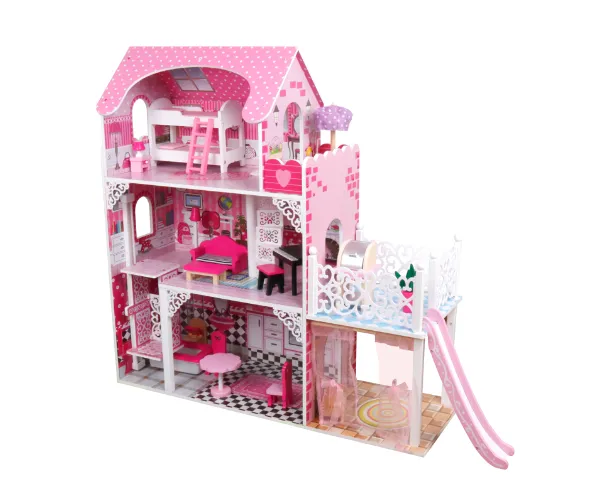 Casă de păpuși din lemn, cod W06A425 — o căsuță înaltă, detaliată și sigură, ideală pentru joaca copiilor.
