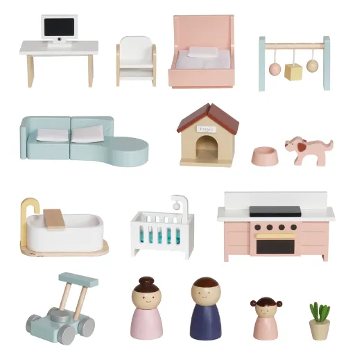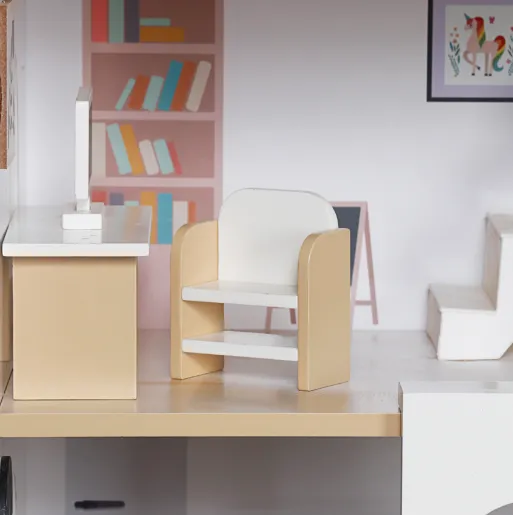 Căsuță din lemn pentru păpuși cu iluminare și funcție de povestire, cod W06A578 — o jucărie specială care îmbină distracția cu învățarea.