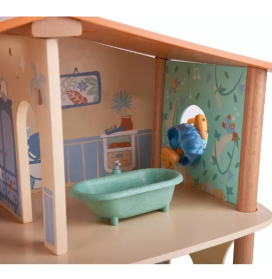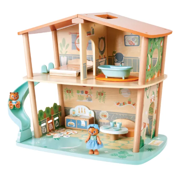 Ce poate fi mai drăguț decât o casă de păpuși? Casă de păpuși a tigrilor! Lasă-l pe micuțul tău să-și exploreze partea creativă cu această abordare adorabilă a casei de păpuși tradiționale de la Hape. Doi tigri locuiesc într-o casă de lemn ecologică, cu care un copil o va petrece ore întregi explorând-o.