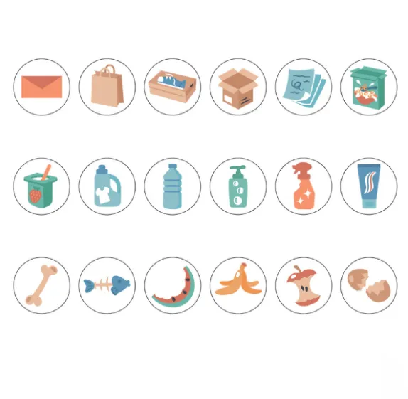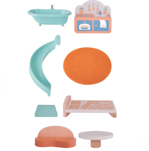 Casa cu două nivele este completată cu un set de mobilier și accesorii – două figurine de tigru, un pat, o cadă de baie, un covoraș de baie, o canapea, o măsuță de cafea, o cratiță, două farfurii, două căni, un aragaz, un tobogan și 18 carduri cu imagini de gunoi pentru 3 coșuri de sortare.