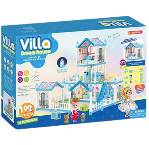 Căsuță pentru păpuși „Vila Visurilor” + accesorii, cu iluminare de noapte, 192 elem.