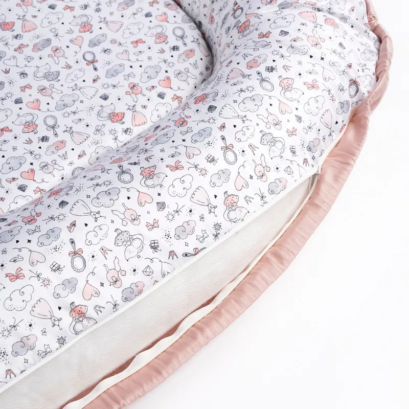 Husa de la babynest este detasabila, cu fermoar. Puteți obține cu ușurință atât salteaua, cât și umplutura laterală și puteți spăla husa. Fermoarele din carcasă sunt cusute într-un mod special, astfel încât copilul să nu poată ajunge la ele și să-și ciupească accidental degetul.