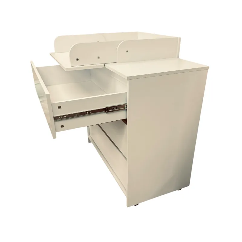 Partea superioară a comodei se lasă ușor pe spate și se transformă într-o masă de înfășat convenabilă. Părțile laterale rotunjite vă vor permite să efectuați îmbrăcarea în siguranță a copilului dumneavoastră.