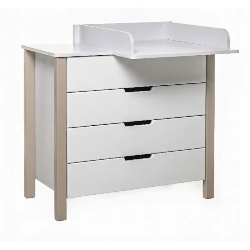 Partea superioară a comodei poate fi pliată cu ușurință și se transformă într-un loc de schimbare convenabil, care poate fi, de asemenea, îndepărtat cu ușurință dacă este necesar. Iar laturile rotunjite vă permit să nu vă faceți griji pentru siguranța copilului dumneavoastră.