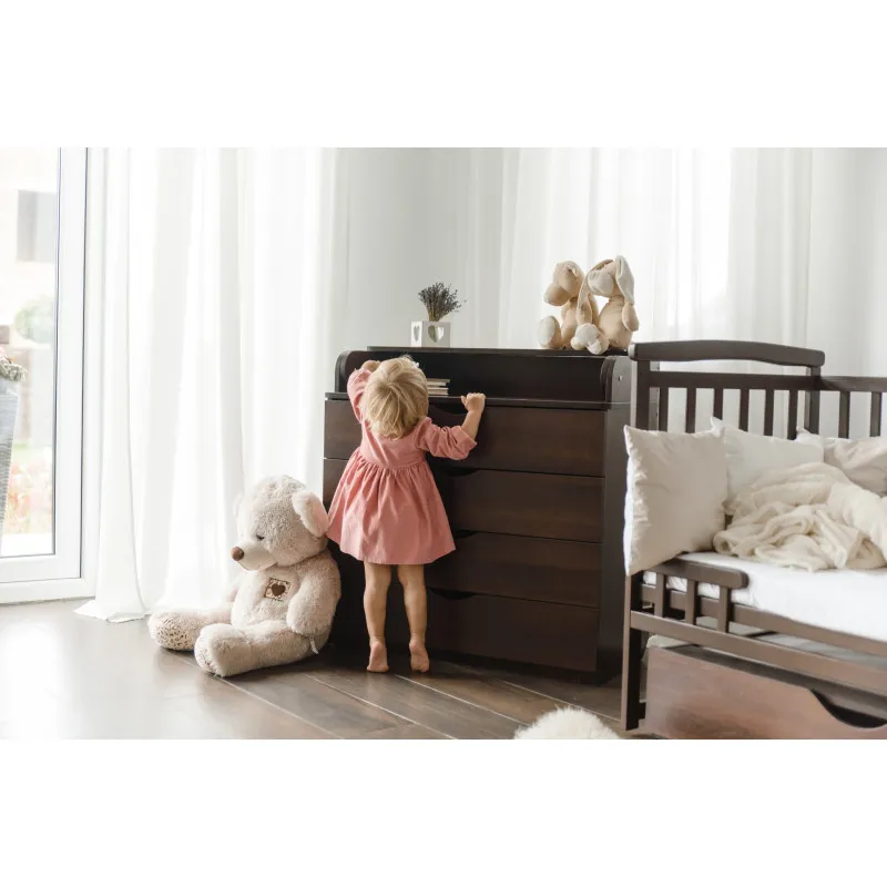 Partea superioară a comodei se transformă într-o măsuță de înfășat;