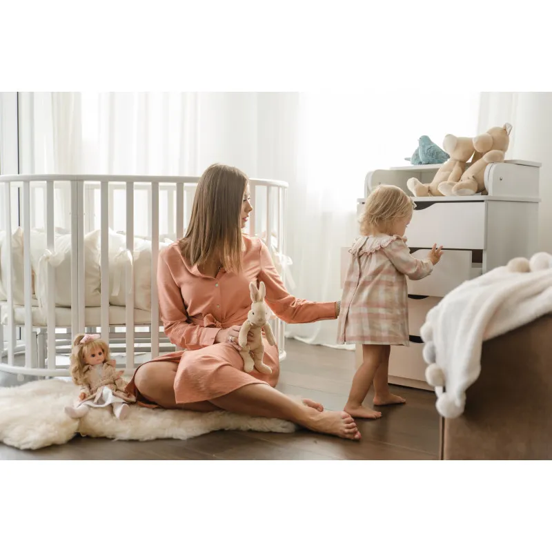 Partea superioară a comodei poate fi pliată cu ușurință și se transformă într-un loc de schimbare convenabil, care poate fi, de asemenea, îndepărtat cu ușurință dacă este necesar. Iar laturile rotunjite vă permit să nu vă faceți griji pentru siguranța copilului dumneavoastră.