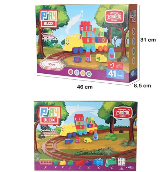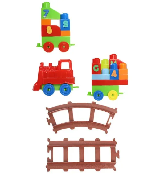 Acest set captivant conține 41 de piese, incluzând șine ce se pot conecta, locomotivă cu două vagoane, pod, copaci și diverse semne de circulație. Toate piesele sunt realizate din plastic de înaltă calitate, sigur pentru copii, rezistent la joaca activă și durabil.