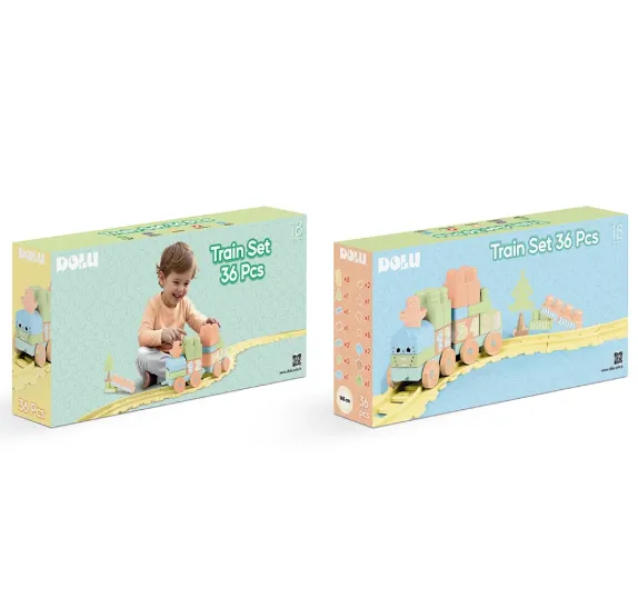 Tren pentru copii cu piese de construcție și șină, conceput pentru joacă interactivă și dezvoltarea creativității. Setul include 36 de piese care permit construirea trenului și realizarea unui traseu complet, oferind copilului posibilitatea de a crea propriile scenarii de joc.