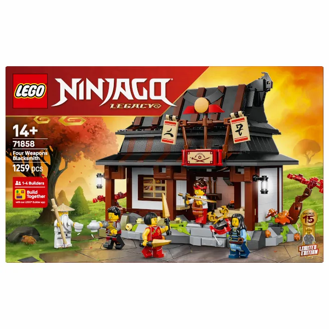 Sărbătoriți 15 ani de la lansarea serialului TV LEGO® NINJAGO® cu setul de construcție „Fierarul cu patru arme” (71858). Băieții, fetele și fanii nostalgici ai serialului, cu vârsta de peste 14 ani, vor fi încântați să poată construi, expune și recrea pentru prima dată scene din cultul atelier de fierărie – primul loc de acțiune din episodul pilot al serialului TV LEGO NINJAGO.