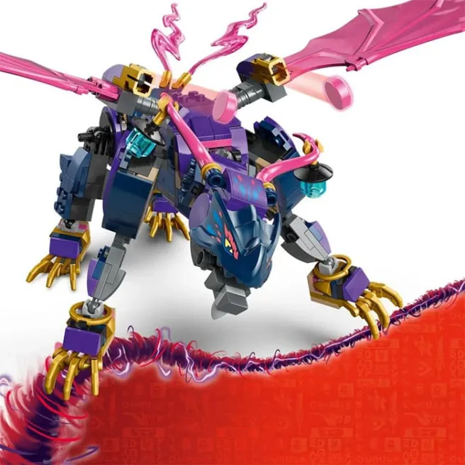 Jucăria LEGO NINJAGO Rontu Dragon Master (71842) permite fanilor ninja să recreeze scene captivante din cel de-al treilea sezon al serialului TV NINJAGO Dragons Rising. Acest set de construcții pentru copii prezintă un dragon cu coadă, labe, aripi, cap și maxilar mobile, 2 poziții pentru a plasa minifigura pe spate și un vârf de tragere sub fiecare aripă.