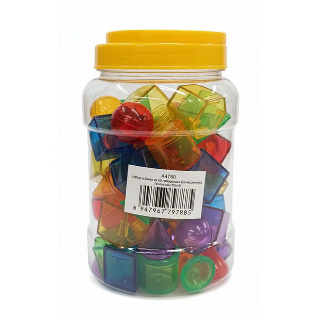 Set de 60 de blocuri geometrice transparente într-un borcan, cod 1224D