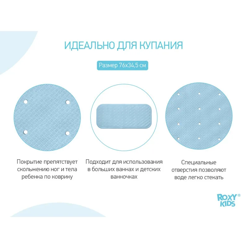 Covor de baie din cauciuc anti-alunecare Roxy Kids 34.5x76 cm (cu gauri), Albastru (BM-34576-B)