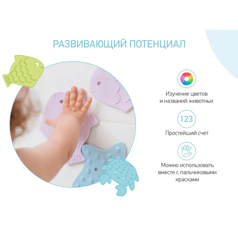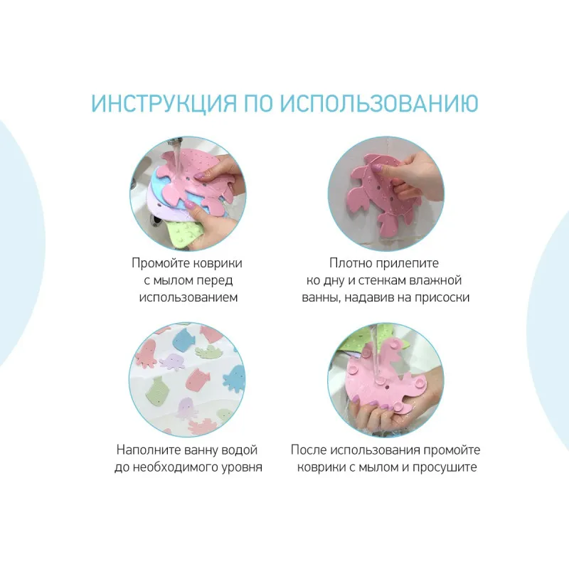 Covorașele de baie mini SEA ANIMALS de la ROXY-KIDS sunt fabricate în Rusia din material TPR modern și sigur.