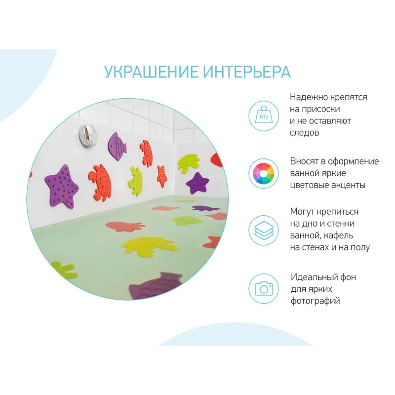 Covorașele de baie mini SEA ANIMALS de la ROXY-KIDS sunt fabricate în Rusia din material TPR modern și sigur.