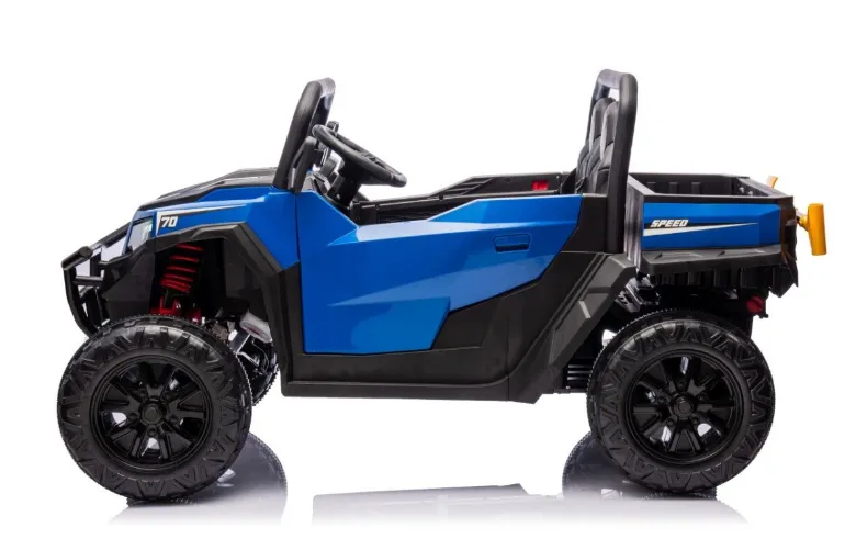 Acesta este un automobil electric pentru copii, în stil off-road, cu două locuri. Are o caroserie albastru aprins cu elemente negre, roți mari cu profil adânc pentru o bună tracțiune pe diverse suprafețe. Mașina este echipată cu volan, două scaune confortabile cu centuri de siguranță și un cadru de protecție. Este destinat activităților recreative în aer liber pentru copii, oferind siguranță, dezvoltând coordonarea și motricitatea, precum și oferind o experiență de condus plăcută și confortabilă.
