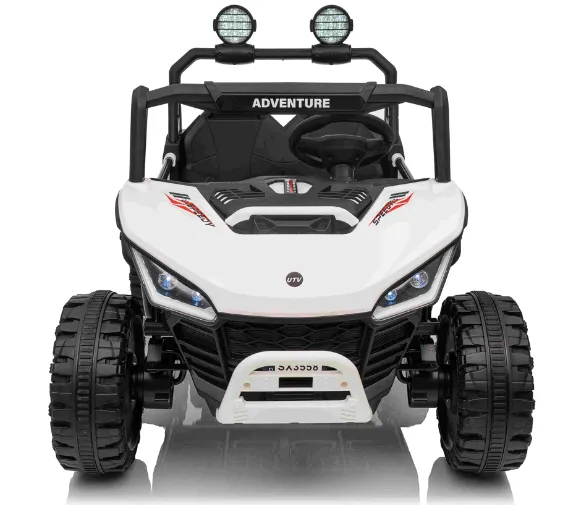 Mașină electrică pentru copii cu caroserie rezistentă, de culoare albă. Mașina este echipată cu volan, scaun cu centuri de siguranță și faruri. Este destinată activităților recreative în aer liber pentru copii, dezvoltă coordonarea și motricitatea, oferind o experiență de condus sigură și distrMașină electrică pentru copii 12V 10Ah, 30W x2, alb, model SX3558