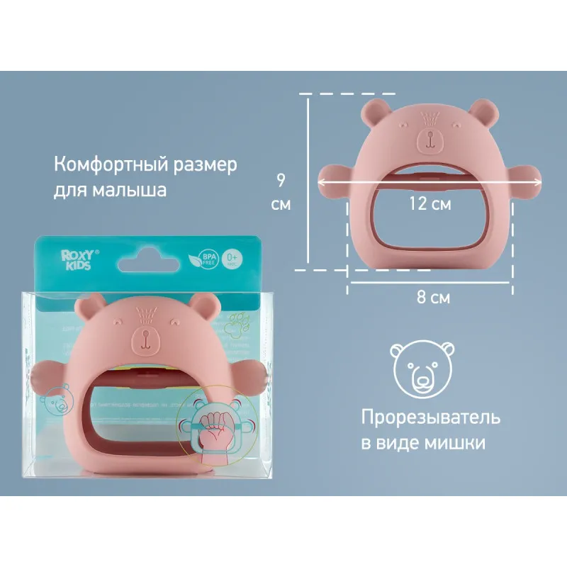 Dentitie din silicon pentru mana Roxy Kids „Bear”, Roz (RST-003-P)