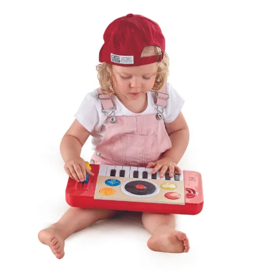 Ajută-ți micuții să cânte primele melodii cu acest sintetizator E0621-HP! Redați solo pe tastatură folosind unul dintre cele patru sunete de instrument sau 18 efecte sonore distractive sau puteți reda unul dintre cele cinci melodii de fundal și utilizați glisorul de tempo pentru a schimba viteza, adăuga efecte de sunet DJ și scratch împreună cu înregistrarea neagră!