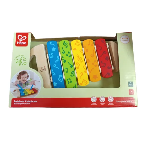 Xilofonul curcubeu de la Hape este jucăria perfectă pentru a introduce copiii în lumea sunetelor și culorilor. Fiecare bară colorată produce un sunet unic la lovire, transformând jocul într-o experiență muzicală captivantă.
