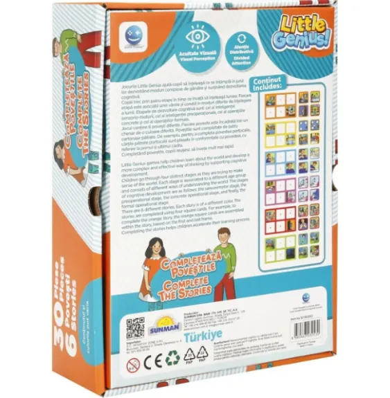 „Completează povestile” este un joc de memorie educativ, creat pentru a ajuta copiii să dezvolte abilități cognitive complexe și să înțeleagă lumea din jurul lor prin povești interactive. Acest joc sprijină dezvoltarea gândirii logice și stimulează imaginația celor mici, încurajându-i să completeze povești pe baza unor imagini ilustrative.