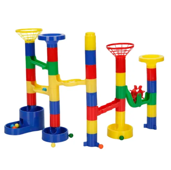 Începeți cursa cu bile cu acest joc de masă multi-nivel! Setul „Traseul bilelor colorate” le permite copiilor să își proiecteze propria pistă, conectând piese colorate pentru ca bilele să se rostogolească pe poduri, tobogane și rampe.
