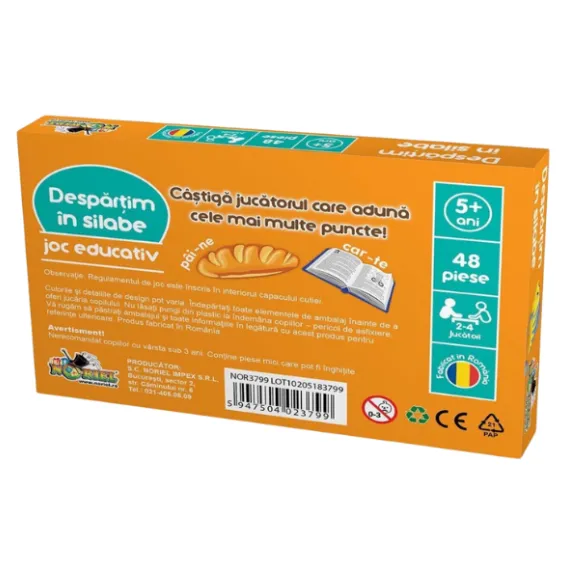 Setul conține 48 de cartonașe cu silabe și ilustrații. Acestea formează perechi de câte două silabe, care compun un cuvânt atunci când sunt potrivite corect. Reguli de joc: amestecă toate cartonașele și așază-le pe masă cu fața în jos. Cel mai tânăr jucător începe jocul, trăgând un cartonaș și punându-l cu fața în sus în dreptul său. Următorul jucător procedează la fel.