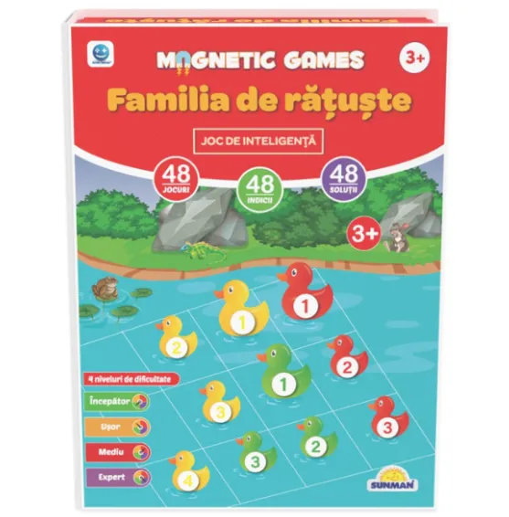 În acest joc, rățuștele trebuie plasate pe tabla magnetică conform indiciilor din cele 48 de jocuri. Diferitele niveluri de dificultate stimulează constant gândirea copiilor, oferind în același timp distracție și provocare.