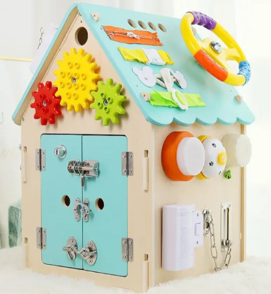 Casuta colorata Busyboard este o jucarie educativa captivanta pentru copii mici, care combina elemente de joaca si invatare. Casuta este fabricata din materiale sigure si este dotata cu diverse detalii interactive: roti dinamice, incuietori, butoane, ceasuri si chiar taste pentru xilofon.