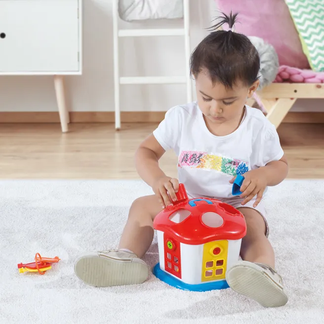 Crescând, copilul începe să înțeleagă că toate obiectele din jur sunt diferite și diferă nu numai prin culoare, ci și prin formă. Dar, pentru a face copilul să cunoască și mai ușor aceste adevăruri, invitați-l să potrivească matrițele din acest set cu găurile corespunzătoare de pe uși și acoperiș.