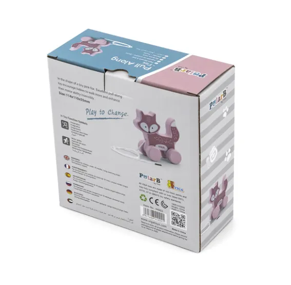 Această jucărie adorabilă din lemn, în formă de vulpiță, va deveni rapid preferata copilului dumneavoastră. Designul atrăgător, roțile comode și șnurul de 65 cm fac această jucărie ideală pentru joacă activă.