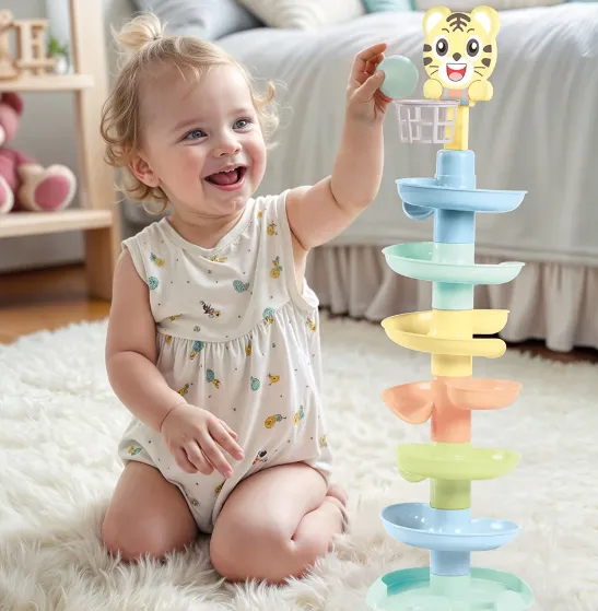 Turn interactiv cu bile pentru copii, conceput pentru joacă educativă și dezvoltarea abilităților motorii. Copilul introduce bila în partea superioară, iar aceasta coboară pe traseu, stimulând atenția și curiozitatea.