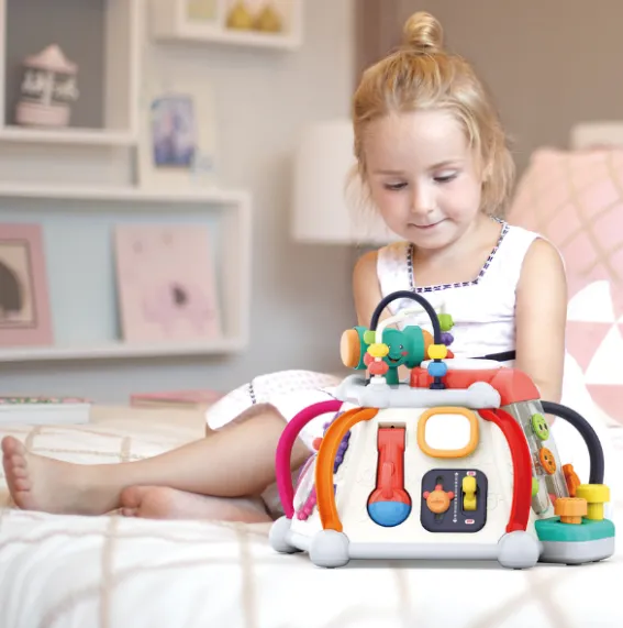 Cub montessori „Piramida de Activități”, are șase laturi (inclusiv cea superioară) de distracție educativă nesfârșită! Această jucărie oferă lumini, sunete și diverse jocuri dinamice pentru învățare și distracție interactivă. Jucăria include multe jocuri diferite pentru a distra copilul și a-i sprijini dezvoltarea.