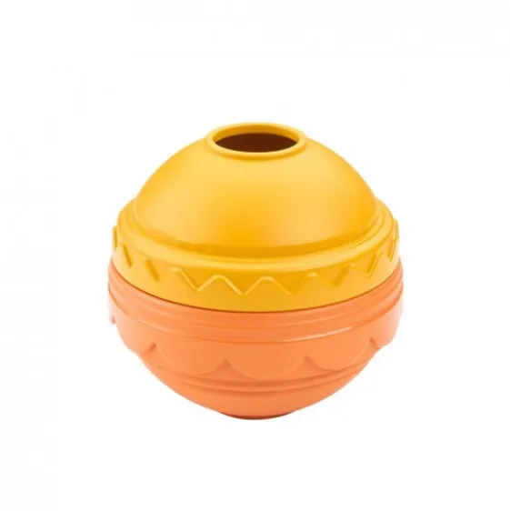 Contine 3 cupe colorate de construit si o jucarie elefant;