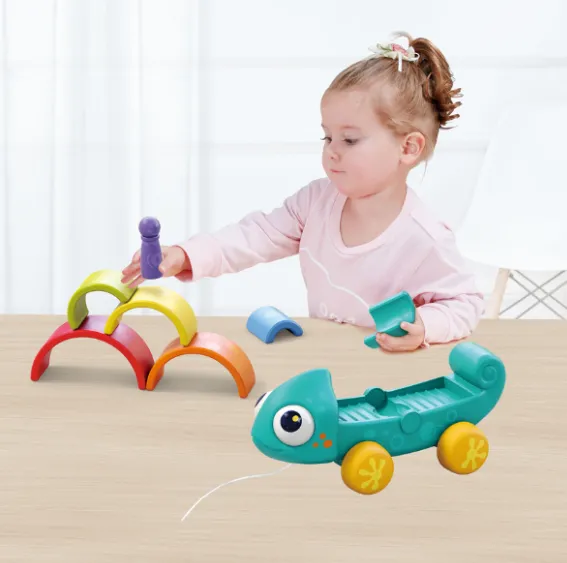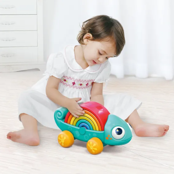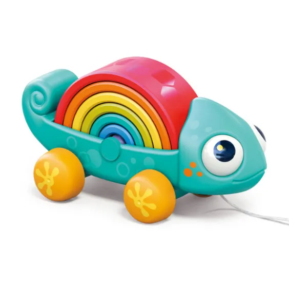 Jucărie de tras cu sfoară „Cameleonul curcubeu”